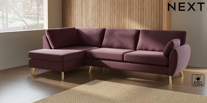 7.3.1 Buy Wilson Large Corner Chaise - Left Hand Fine Chenille Easy Clean Mid Mulberry Purple Metal Tapered - Gold from the Seasons online shop