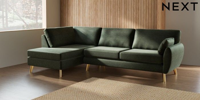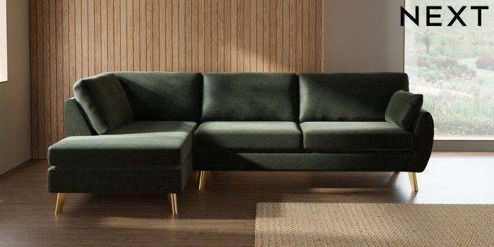 7.3.1 Buy Wilson Large Corner Chaise - Left Hand Luxe Chenille Mid Green Metal Tapered - Gold from the Seasons online shop