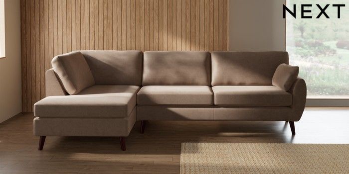 7.3.1 Buy Wilson Large Corner Chaise - Left Hand Luxe Chenille Mid Natural Retro Tapered - Dark Brown from the Seasons online shop Click here to use our website with more accessibility support, for example screen readers