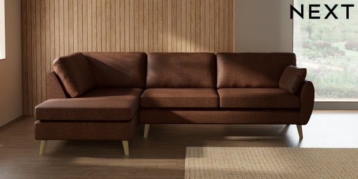 7.3.1 Buy Wilson Large Corner Chaise - Left Hand Monza Faux Leather Easy Clean Chestnut Brown Retro Tapered - Light from the Seasons online shop