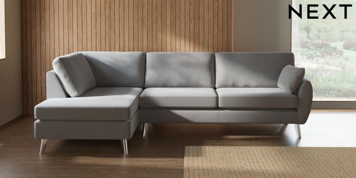7.3.1 Buy Wilson Large Corner Chaise - Left Hand Natural Mix Light Grey Metal Tapered - Chrome from the Seasons online shop Click here to use our website with more accessibility support, for example screen readers