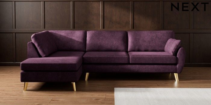 7.3.1 Buy Wilson Large Corner Chaise - Left Hand Plush Chenille Dark Plum Purple Metal Tapered - Gold from the Seasons online shop