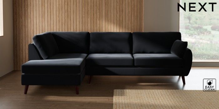 7.3.1 Buy Wilson Large Corner Chaise - Left Hand Plush Velvet Easy Clean Charcoal Grey Retro Tapered - Dark Brown from the Seasons online shop