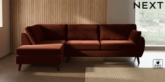 7.3.1 Buy Wilson Large Corner Chaise - Left Hand Plush Velvet Easy Clean Ginger Orange Retro Tapered - Dark Brown from the Seasons online shop