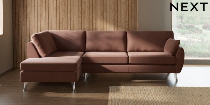 7.3.1 Buy Wilson Large Corner Chaise - Left Hand Relaxed Linen Look Light Rust Brown Metal Tapered - Chrome from the Seasons online shop Click here to use our website with more accessibility support, for example screen readers
