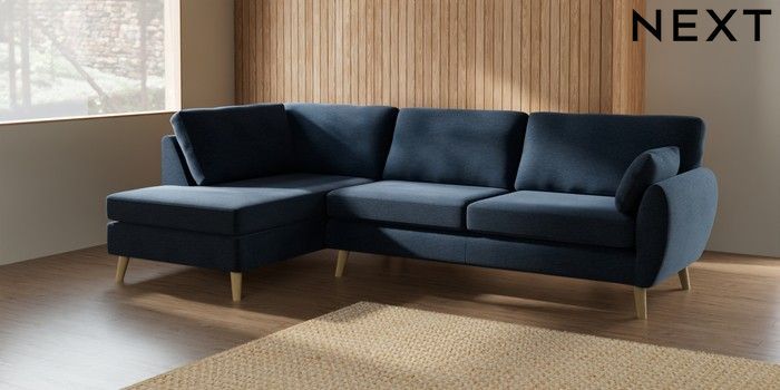 7.3.1 Buy Wilson Large Corner Chaise - Left Hand Ripple Chenille Dark Blue Retro Tapered - Light from the Seasons online shop Click here to use our website with more accessibility support, for example screen readers