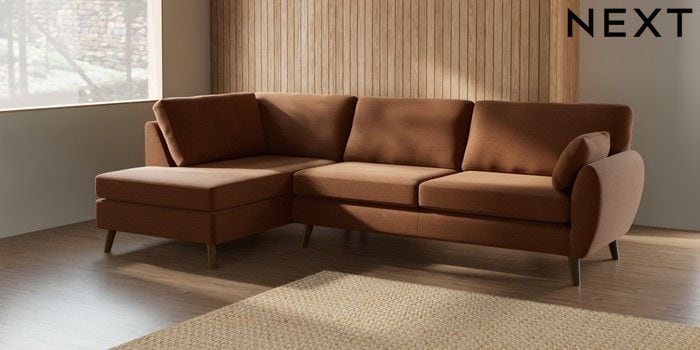 7.2.10 Buy Wilson Large Corner Chaise - Left Hand Ripple Chenille Mid Rust Brown Retro Tapered - Mid from the Seasons online shop Click here to use our website with more accessibility support, for example screen readers