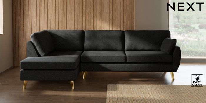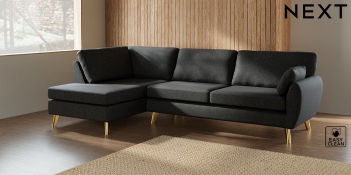 7.3.1 Buy Wilson Large Corner Chaise - Left Hand Tweedy Blend Easy Clean Charcoal Grey Metal Tapered - Gold from the Seasons online shop
