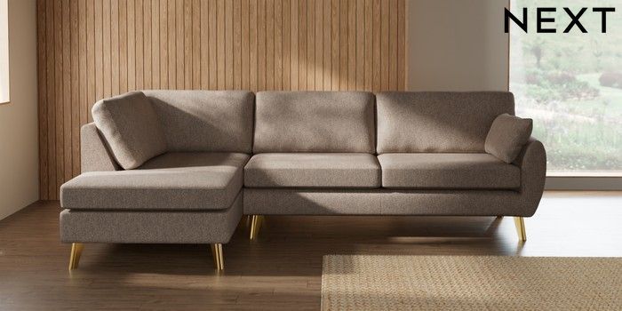 7.3.1 Buy Wilson Large Corner Chaise - Left Hand Tweedy Chenille Mid Natural Metal Tapered - Gold from the Seasons online shop