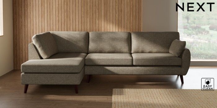 7.3.1 Buy Wilson Large Corner Chaise - Left Hand Woven Chenille Easy Clean Mid Natural Retro Tapered - Dark Brown from the Seasons online shop Click here to use our website with more accessibility support, for example screen readers