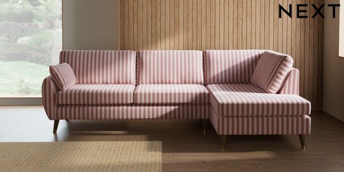 7.3.1 Buy Wilson Large Corner Chaise - Right Hand Bold Chenille Stripe Dark Pink Low Retro Tapered Metal Cap - Mid from the Seasons online shop