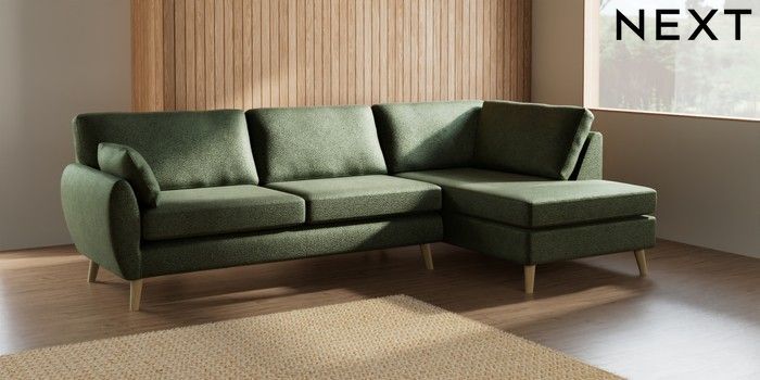 7.3.1 Buy Wilson Large Corner Chaise - Right Hand Boucle Chenille Dark Moss Green Retro Tapered - Light from the Seasons online shop Click here to use our website with more accessibility support, for example screen readers