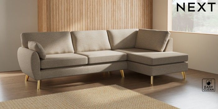 7.3.1 Buy Wilson Large Corner Chaise - Right Hand Boucle Weave Easy Clean Dark Natural Metal Tapered - Gold from the Seasons online shop