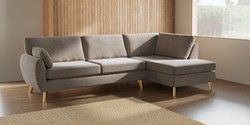 7.3.1 Buy Wilson Large Corner Chaise - Right Hand Chunky Chenille Light Dove Metal Tapered - Gold from the Seasons online shop