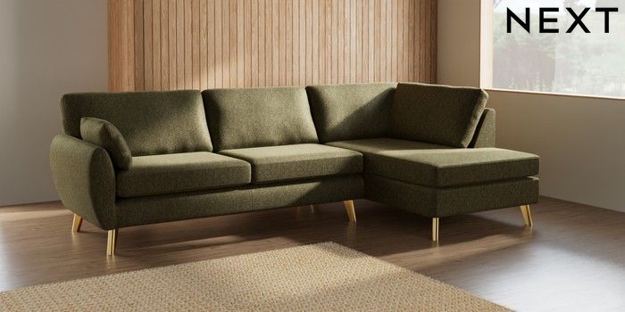 7.3.1 Buy Wilson Large Corner Chaise - Right Hand Cotswold Chenille Dark Green Metal Tapered - Gold from the Seasons online shop