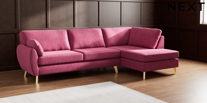 7.3.1 Buy Wilson Large Corner Chaise - Right Hand Cotswold Chenille Dark Raspberry Pink Metal Tapered - Gold from the Seasons online shop Click here to use our website with more accessibility support, for example screen readers
