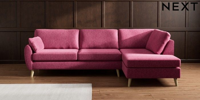 7.3.1 Buy Wilson Large Corner Chaise - Right Hand Cotswold Chenille Dark Raspberry Pink Retro Tapered - Light from the Seasons online shop Click here to use our website with more accessibility support, for example screen readers