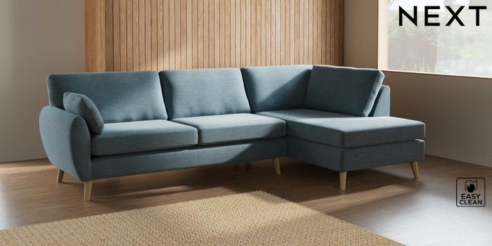 7.3.1 Buy Wilson Large Corner Chaise - Right Hand Fine Chenille Easy Clean Mid Blue Retro Tapered - Light from the Seasons online shop Click here to use our website with more accessibility support, for example screen readers