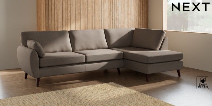 7.3.1 Buy Wilson Large Corner Chaise - Right Hand Fine Chenille Easy Clean Mid Taupe Brown Retro Tapered - Dark Brown from the Seasons online shop