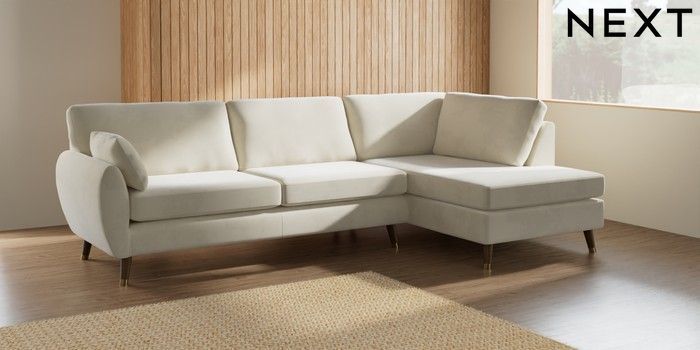 7.3.1 Buy Wilson Large Corner Chaise - Right Hand Luxe Chenille Oyster Low Retro Tapered Metal Cap - Mid from the Seasons online shop Click here to use our website with more accessibility support, for example screen readers