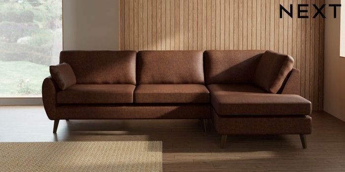 7.3.1 Buy Wilson Large Corner Chaise - Right Hand Monza Faux Leather Easy Clean Chestnut Brown Retro Tapered - Mid from the Seasons online shop