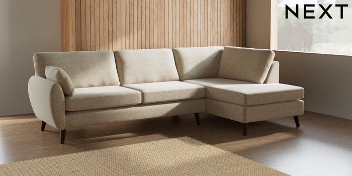 7.3.1 Buy Wilson Large Corner Chaise - Right Hand Chunky Weave Cream Retro Tapered - Dark Brown from the Seasons online shop Click here to use our website with more accessibility support, for example screen readers