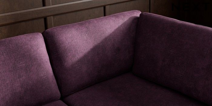 7.3.1 Buy Wilson Large Corner Chaise - Right Hand Plush Chenille Dark Plum Purple Metal Tapered - Gold from the Seasons online shop