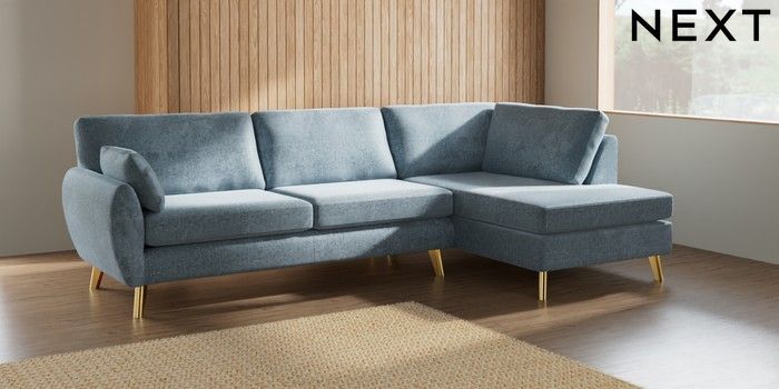 7.3.1 Buy Wilson Large Corner Chaise - Right Hand Plush Chenille Light Blue Metal Tapered - Gold from the Seasons online shop Click here to use our website with more accessibility support, for example screen readers