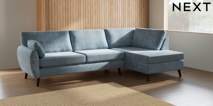 7.3.1 Buy Wilson Large Corner Chaise - Right Hand Plush Chenille Light Blue Retro Tapered - Dark Brown from the Seasons online shop Click here to use our website with more accessibility support, for example screen readers