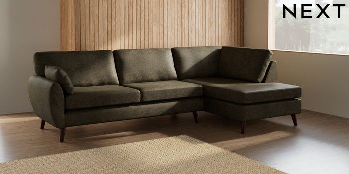 7.3.1 Buy Wilson Large Corner Chaise - Right Hand Plush Chenille Moss Green Retro Tapered - Dark Brown from the Seasons online shop Click here to use our website with more accessibility support, for example screen readers