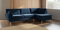 7.3.1 Buy Wilson Large Corner Chaise - Right Hand Plush Velvet Easy Clean Airforce Blue Metal Tapered - Gold from the Seasons online shop