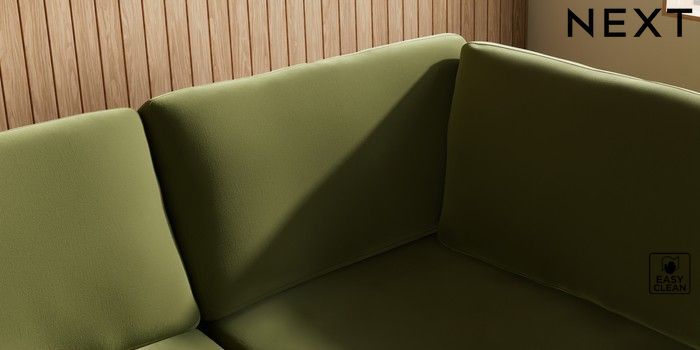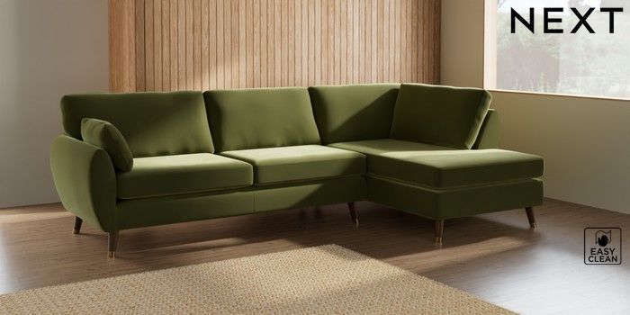 7.3.1 Buy Wilson Large Corner Chaise - Right Hand Plush Velvet Easy Clean Mid Olive Green Low Retro Tapered Metal Cap - Mid from the Seasons online shop