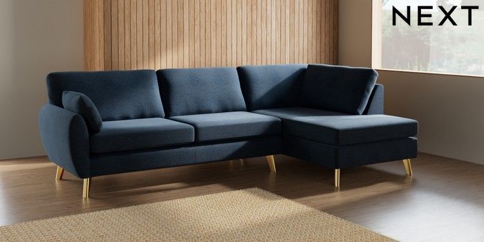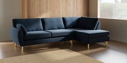 7.3.1 Buy Wilson Large Corner Chaise - Right Hand Ripple Chenille Dark Blue Metal Tapered - Gold from the Seasons online shop