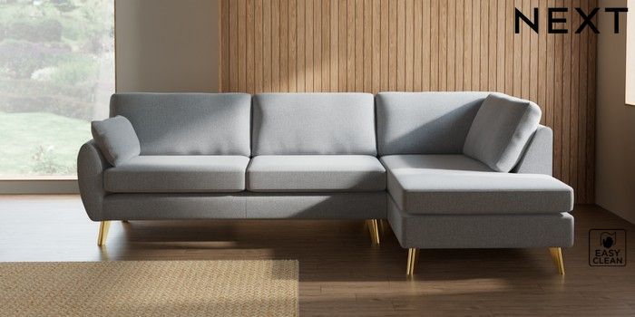 7.3.1 Buy Wilson Large Corner Chaise - Right Hand Tweedy Blend Easy Clean Light Silver Grey Metal Tapered - Gold from the Seasons online shop