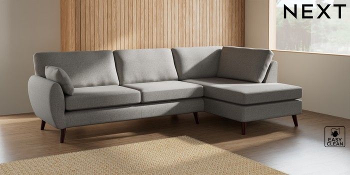 7.3.1 Buy Wilson Large Corner Chaise - Right Hand Woven Chenille Easy Clean Light Grey Retro Tapered - Dark Brown from the Seasons online shop Click here to use our website with more accessibility support, for example screen readers