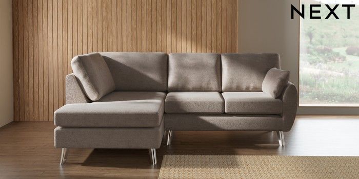 7.3.1 Buy Wilson Medium Corner Chaise - Left Hand Boucle Chenille Light Natural Metal Tapered - Chrome from the Seasons online shop Click here to use our website with more accessibility support, for example screen readers