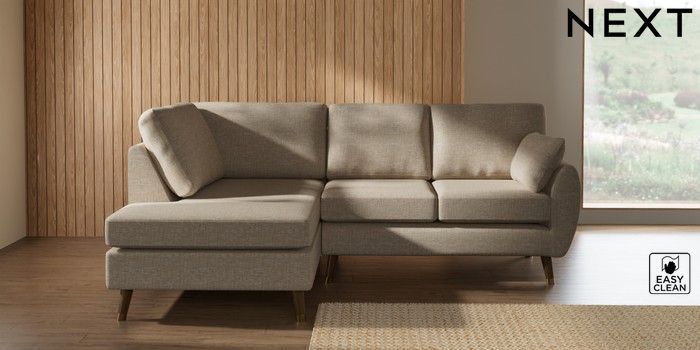 7.3.1 Buy Wilson Medium Corner Chaise - Left Hand Boucle Weave Easy Clean Dark Natural Low Retro Tapered Metal Cap - Mid from the Seasons online shop Click here to use our website with more accessibility support, for example screen readers