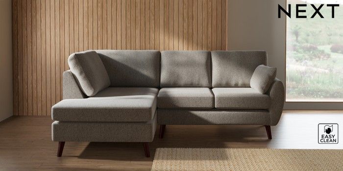 7.3.1 Buy Wilson Medium Corner Chaise - Left Hand Chunky Boucle Easy Clean Dove Retro Tapered - Dark Brown from the Seasons online shop Click here to use our website with more accessibility support, for example screen readers