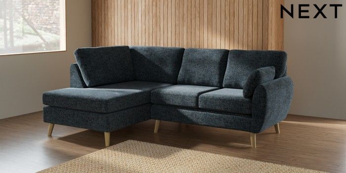 7.2.10 Buy Wilson Medium Corner Chaise - Left Hand Chunky Chenille Dark Navy Blue Retro Tapered - Light from the Seasons online shop Click here to use our website with more accessibility support, for example screen readers