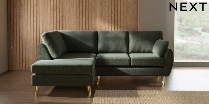 7.3.1 Buy Wilson Medium Corner Chaise - Left Hand Chunky Texture Mid Forest Green Metal Tapered - Gold from the Seasons online shop Click here to use our website with more accessibility support, for example screen readers