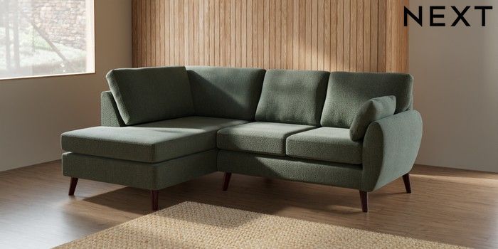 7.3.1 Buy Wilson Medium Corner Chaise - Left Hand Chunky Texture Mid Forest Green Retro Tapered - Dark Brown from the Seasons online shop Click here to use our website with more accessibility support, for example screen readers