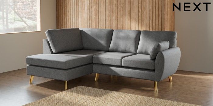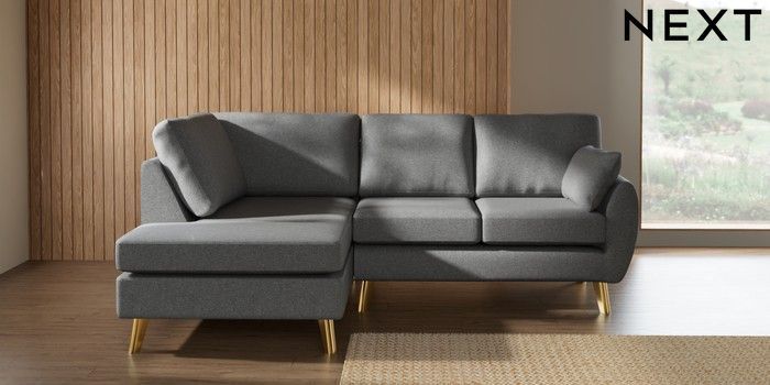 7.3.1 Buy Wilson Medium Corner Chaise - Left Hand Chunky Weave Mid Grey Metal Tapered - Gold from the Seasons online shop Click here to use our website with more accessibility support, for example screen readers