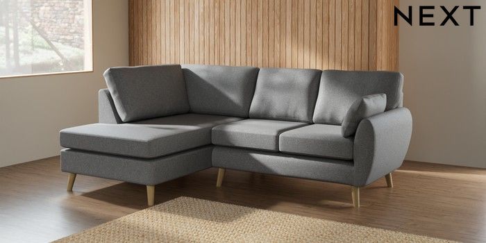 7.2.10 Buy Wilson Medium Corner Chaise - Left Hand Chunky Weave Mid Grey Retro Tapered - Light from the Seasons online shop Click here to use our website with more accessibility support, for example screen readers