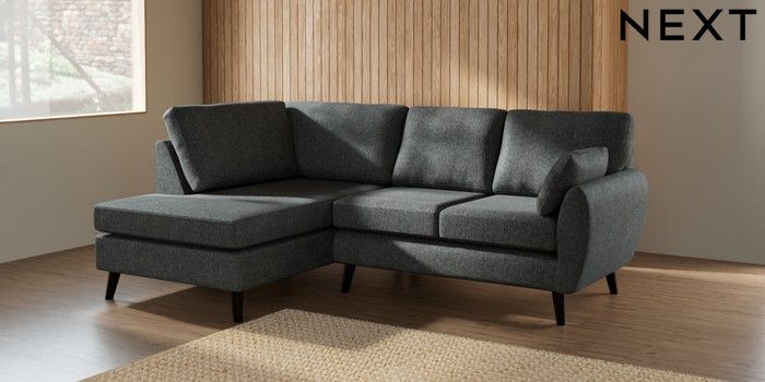 7.3.1 Buy Wilson Medium Corner Chaise - Left Hand Cotswold Chenille Dark Grey Retro Tapered - Dark from the Seasons online shop Click here to use our website with more accessibility support, for example screen readers