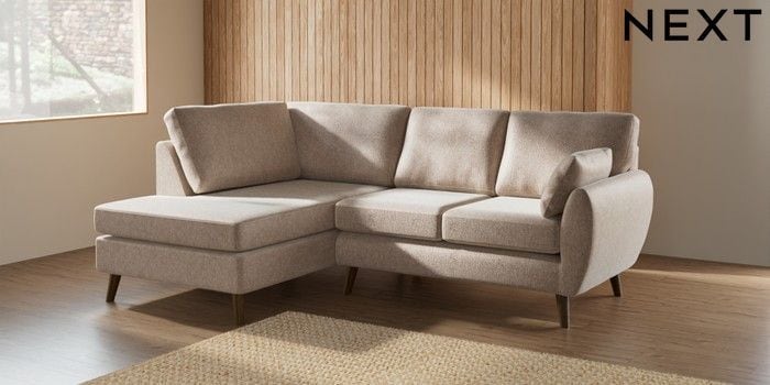 7.2.10 Buy Wilson Medium Corner Chaise - Left Hand Cotswold Chenille Light Natural Retro Tapered - Mid from the Seasons online shop Click here to use our website with more accessibility support, for example screen readers