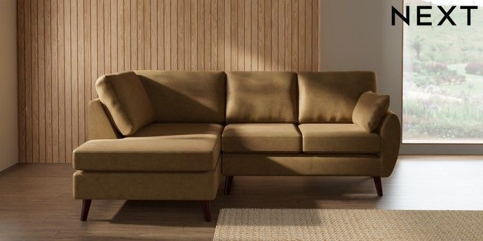 7.3.1 Buy Wilson Medium Corner Chaise - Left Hand Luxe Chenille Honey Yellow Retro Tapered - Dark Brown from the Seasons online shop Click here to use our website with more accessibility support, for example screen readers