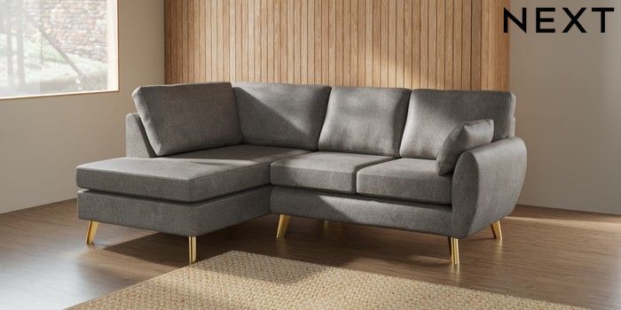 7.3.1 Buy Wilson Medium Corner Chaise - Left Hand Plush Chenille Light Grey Metal Tapered - Gold from the Seasons online shop Click here to use our website with more accessibility support, for example screen readers