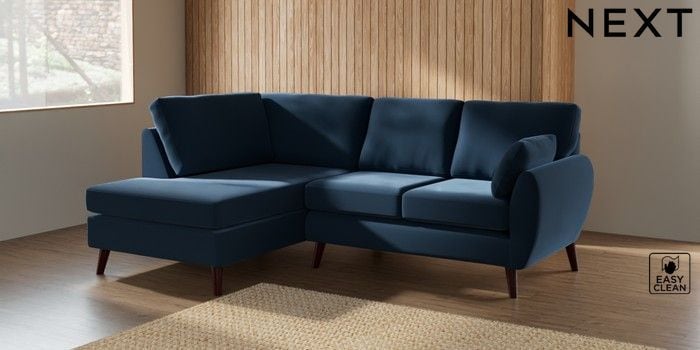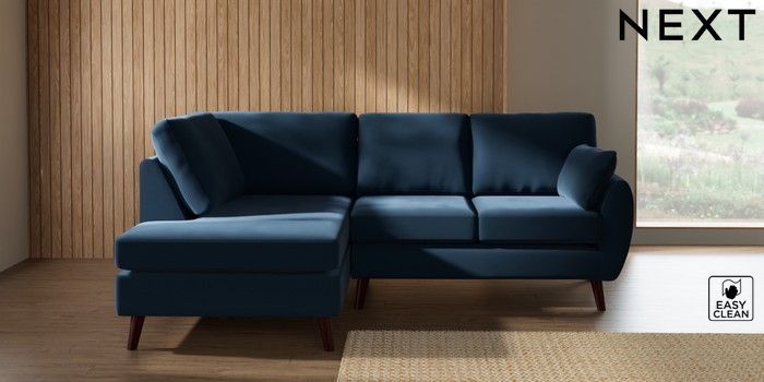 7.3.1 Buy Wilson Medium Corner Chaise - Left Hand Plush Velvet Easy Clean Airforce Blue Retro Tapered - Dark Brown from the Seasons online shop Click here to use our website with more accessibility support, for example screen readers
