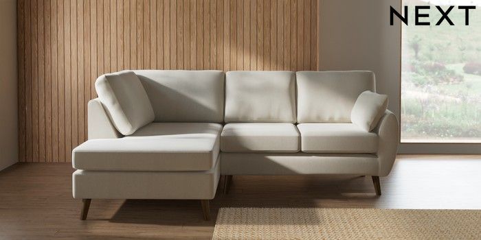 7.3.1 Buy Wilson Medium Corner Chaise - Left Hand Relaxed Linen Look Oyster Retro Tapered - Mid from the Seasons online shop Click here to use our website with more accessibility support, for example screen readers