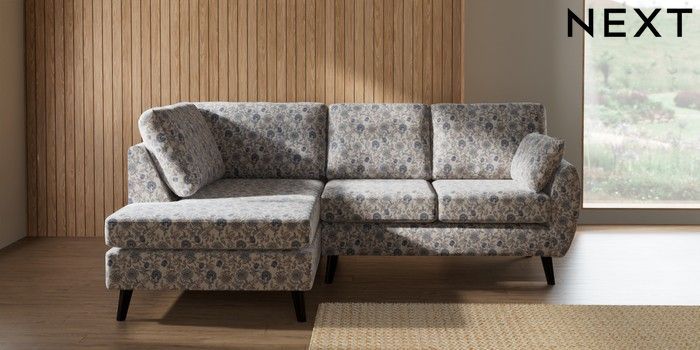 7.3.1 Buy Wilson Medium Corner Chaise - Left Hand Relaxed Linen Look Print Woodblock Floral Blue Retro Tapered - Dark from the Seasons online shop